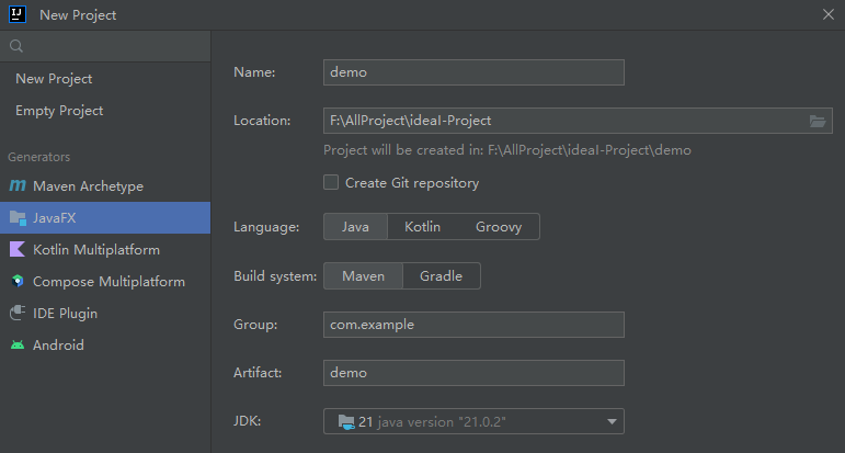 使用 idea 创建一个 javaFX 项目;