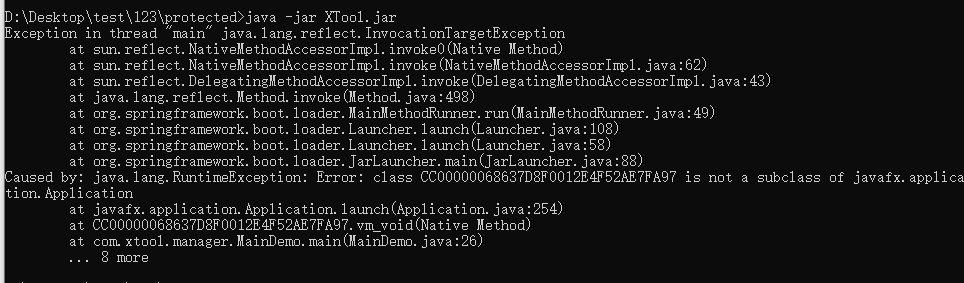 使用 Java VME 方式保护,如果对 jar 包内所有函数全选代码虚拟化后,程序无法运行,会报错如下信息:
