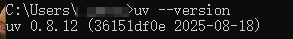 - 通过pip安装,使用pip进行安装(需要安装Python环境):pip install uv