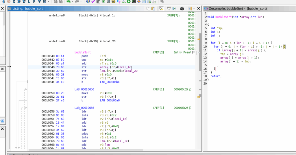 bubbleSort XREF[2]: Entry Point(*), main:00010762(c)