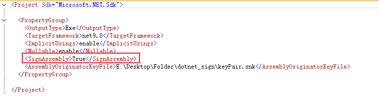 <AssemblyOriginatorKeyFile>Key\YourKey.snk</AssemblyOriginatorKeyFile>