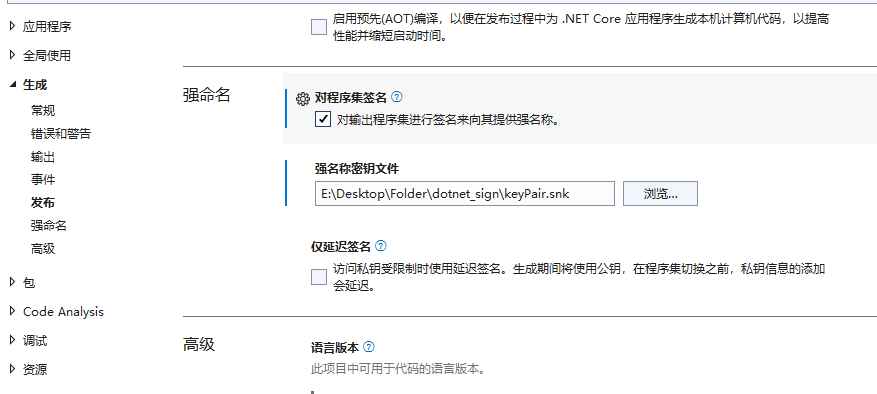 签名文件,之后便可编译出带有强名称签名的.NET程序