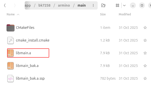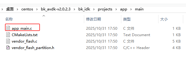 2.对该项目进行编译后获取到libmain.a、app.elf和app.bin文件,其中libmain.a为编译的中间产物,app.elf和app.bin属于最终产物。