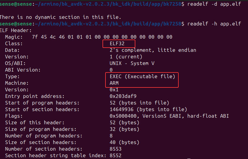 3.使用readelf查看,发现app.bin不属于elf文件个数,app.elf属于标准的elf文件格式。