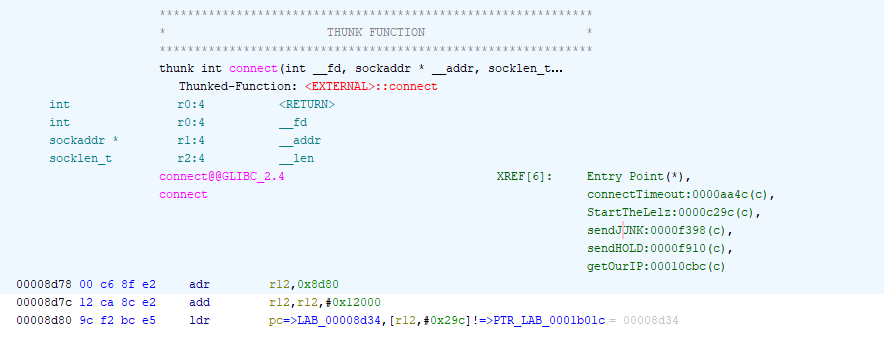 首先找到用于socket连接的函数connect,通过交叉引用得到哪些地方调用了connect去网络链接。